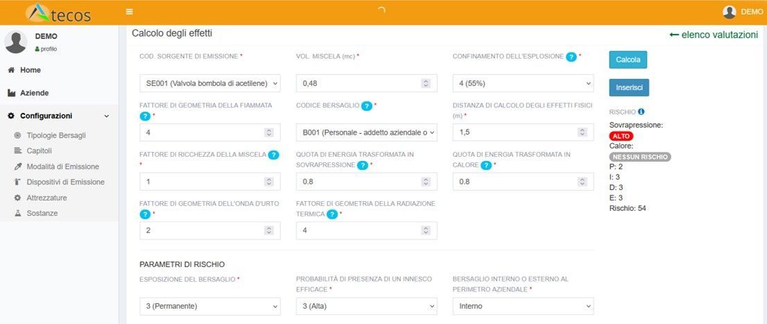 - calcolo del rischio esplosione associato a ciascuna emissione, considerando probabilità di esplosione e magnitudo del danno;